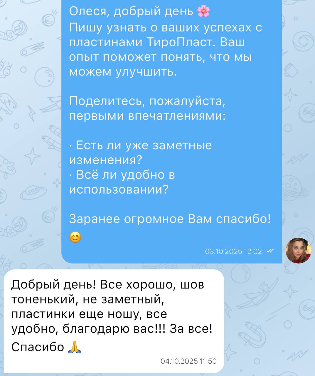 2 упаковки силиконовых пластин ТироПласт. Хватает примерно на 2 месяца.